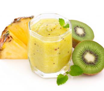 عصير الاناناس والكيوي: يفضل تناول هذا العصير بدون اضافة سكر وبدلا من وجبة العشاء، فهذا سيساعدك على حرق الدهون بشكل اسرع.